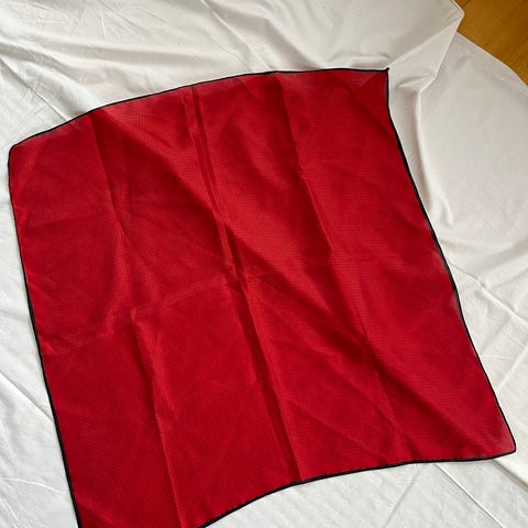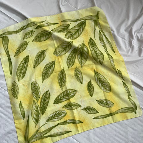 Hyväkuntoinen liila huivi mustilla kohokuvioilla. Erittäin kaunis, monikäyttöinen asuste. Koko n. 51 x 51 cm.