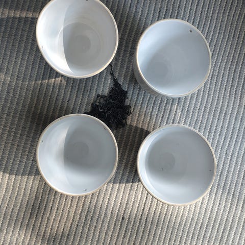 Makramee-tyylinen amppeli, valmistettu juuttinarusta tai vastaavasta luonnonkuidusta. Mukaan saa halutessaan lisää narua amppelin pidentämiseen tai pienemmäksi amppeliksi.