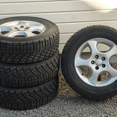 Renkaissa pintaa ja nastoja, mutta parista ruopinut pinnan karkeaksi, kun on jäällä ajettu.