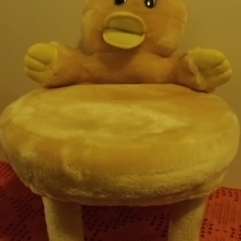 Pehmo pupu ja puinen ankka. Ankka ollut kovassa köytössä.