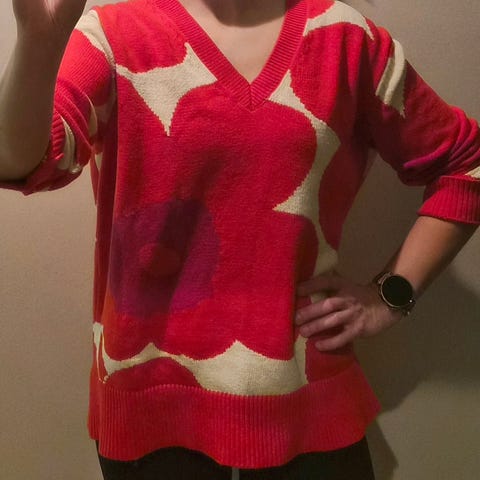 Myydään Marimekko Eine Unikko pusero koossa S. Väri tummanvihreä-vaaleanpunainen. Voi käyttää vyöllä tai ilman. 100% viskoosia. Kunto hyvä, ei merkittäviä käytön jälkiä. Mitat: kainalo-kainalo 55cm, olkapää-helma 70cm