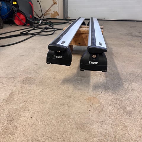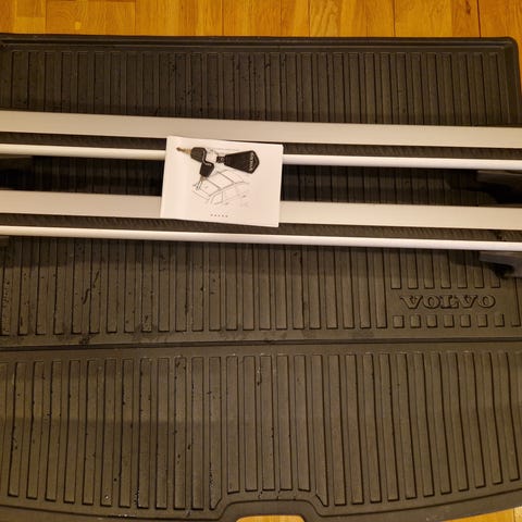 Volvo/Thule wingbar kattotelineet. Materiaalina alumiini. Telineissä on lukittavat päädyt ja kiinnitysmekanismit. 2kpl avaimia