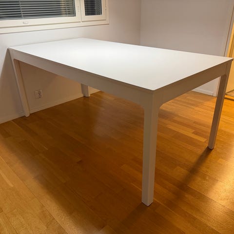 Myydään uuden tieltä jatkettava ruokapöytä, jossa kaksi jatkopalaa.