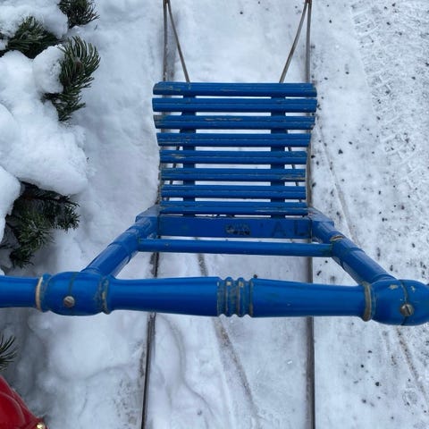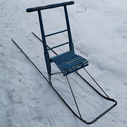 Vanha potkukelkka ja liukurit