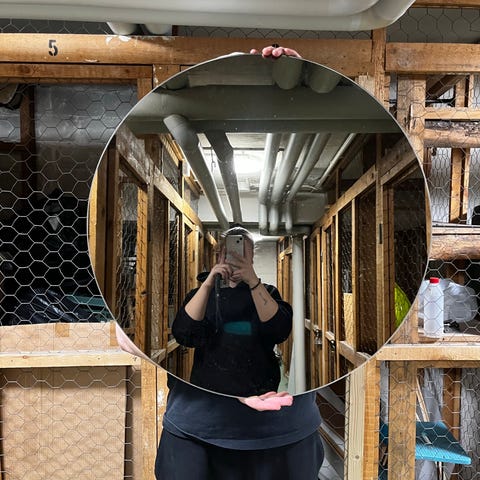 Myydään lasiliikkeessä teetetty pyöreä peili, halkaisijaltaan 80cm. Meillä tämä on ollut kiinnitettynä seinälle vahvoilla taulujen kiinnitykseen tarkoitetuilla velcro-tarroilla (ks. kuvat taustapuolelta, nämä voi irrottaa ja korvata uusilla). Asennus peiliteipillä onnistuu toki myös 😊 Nouto Vuoreksesta.