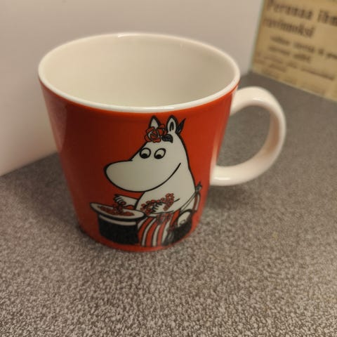 Käytössä ollut hyväkuntoinen ja ehjä muki. Vanhalla kruunuleimalla.