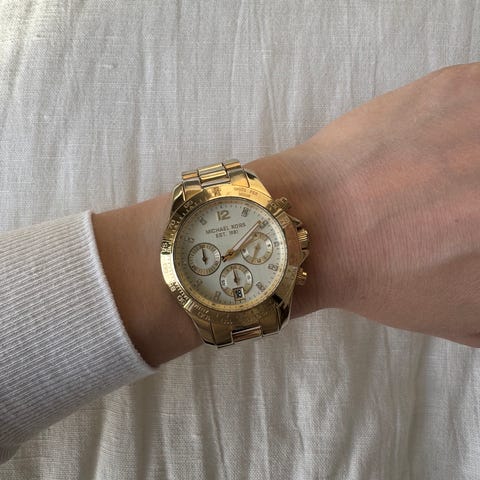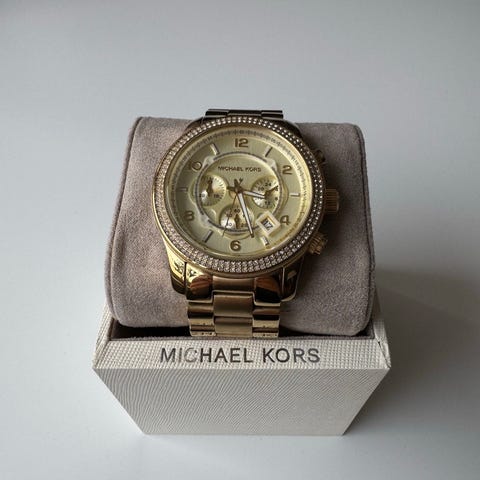 Michael Kors naisten hopeinen rannekello. Kunnoltaan siisti, pientä kulumaa rannekkeessa. Paristo on loppunut. Malli MK6186. Mukaan alkuperäinen laatikko ja rannekkeen lisäpalat.