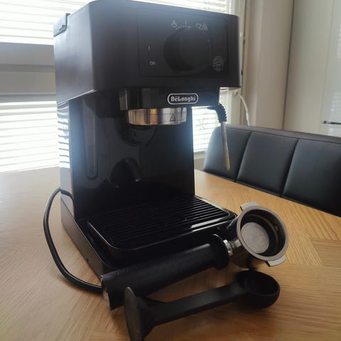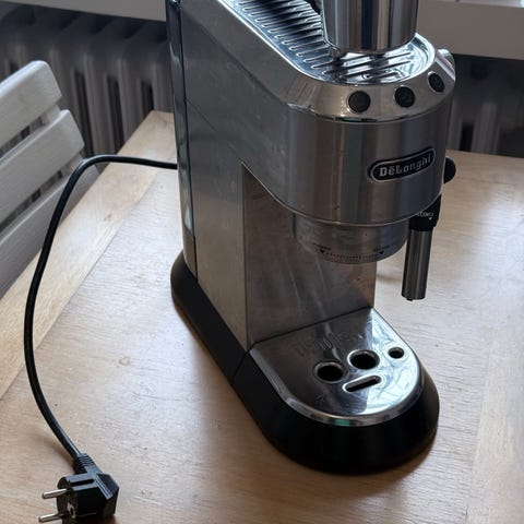 De'Longhi espressokeitin kotikäyttöön. Ollut lähes käyttämättömänä, joten edelleen erinomaisessa kunnossa. Koneella saa valmistettua espressoa, sekä vaahdotettua maidon. Mukaan saa myös maitokannun, espressomitan (päässä "tampperi"), tupla, sinkku ja puhdistus suodatinsihdit. En lähde postittamaan, nouto Jyväskylästä Kukkumäestä tai omien menojen mukaan esimerkiksi keskustasta tai sepästä! Hinnassa neuvoteltavaa!