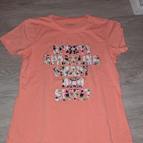 Musta t-paita tekstillä. Siisti ja ehjä.