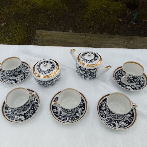 Myydään kaunis ja näyttävä japanilainen teeastiasto, reliefikoristeisella lohikäärmekuviolla. Harmaan sävyinen ja kohokuvioidut yksityiskohdat tekevät setistä todella näyttävän.