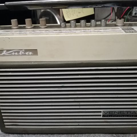 Päällisin puolin aika nätti vanha ruotsalainen matkaradio, vaikka sen harraste-Amazonin somistukseksi? Radio on vuodelta 1958. Ulkonäköhaitat ovat akneinen peili ja lohjennut viritinpaneelin suojamuovi. Toimiiko se? En tiedä! Minusta ei ole askartelemaan radion ilmeisesti tarvitsemaa 67,5 voltin (?) virtalähdettä. Oheinen vanha Airamin 90V paristo tulee radion mukana.