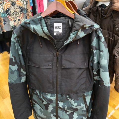 Uusi, itselle väärän kokoinen musta takki myynnissä.