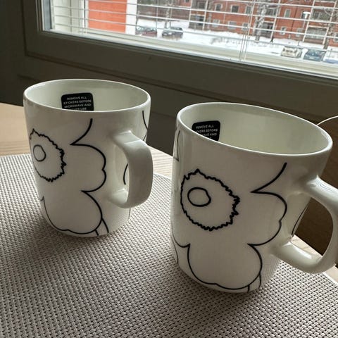 Myydään käyttämättömät Marimekon piirto Unikko kulhot, vetoisuus 2,5dl, väri musta-valkoinen