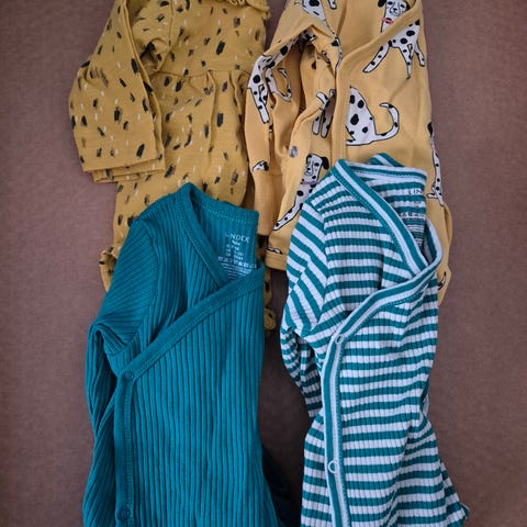 Elloksen valkoinen kietaisubody ja Name itin kukallinen venekaulusbody.