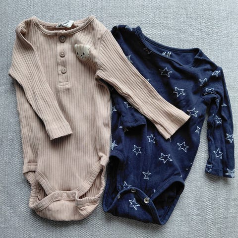 Kaksi HM t-paitabodya. Kokomerkintä 68, mutta vastaa enemmän 62.