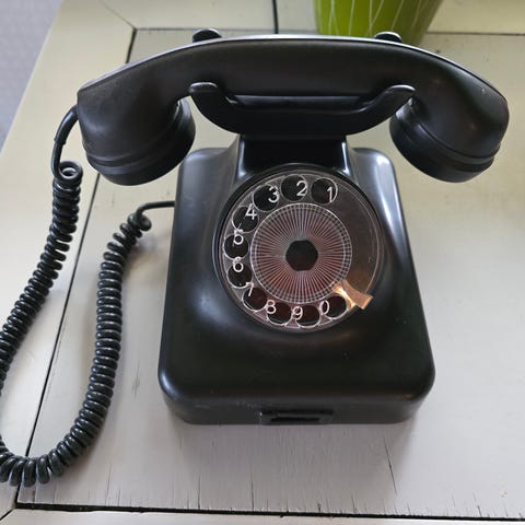 Kuvan vanha lankapuhelin. Siistikuntoinen.