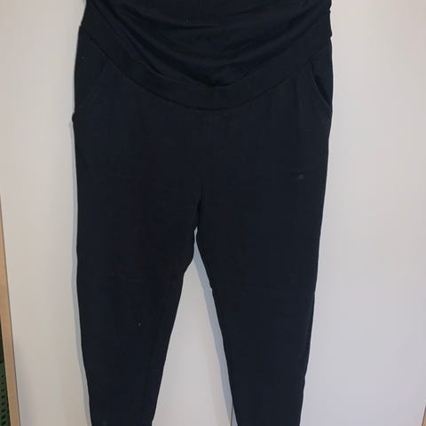 Erittäin hyväkuntoiset ja mukavat yhden talven käytetyt raskausajan mustat toppahousut talvikeleillä ulkoiluun.