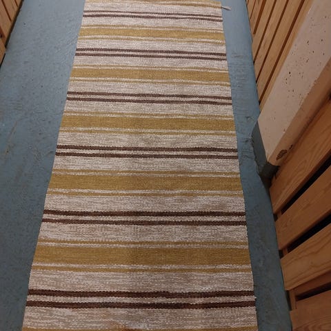 Annetaan pesemättömänä matto, joka aikanaan tehty uudesta matonkuteesta. Hapsut kuluneet. Ollut koiraperheessä. Haku Nättinummesta.