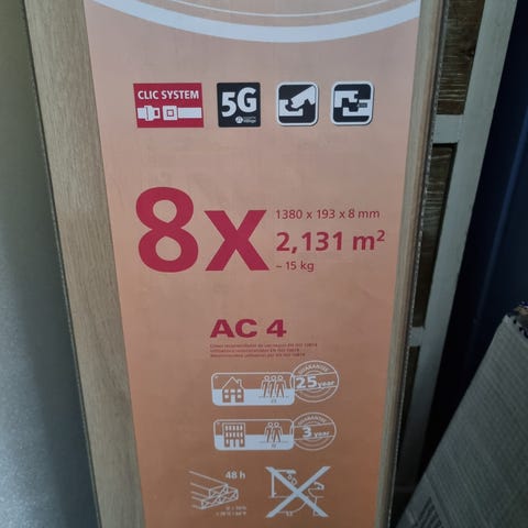 Hyväkuntoista laimaattia, noin 12-13 neliötä. Ostin Bauhausista vuonna 2014, ja asensin silloin makuuhuoneeseen. Muistaakseni tämä oli kulutuskestävyydeltään keskimääräistä lujempaa.