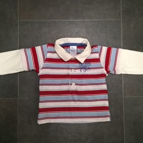 Raidallinen, Napero -merkkinen puuvillatrikoo paita.