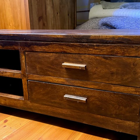 Myynnissä valkoinen taso, puuta ja päällä valkoinen lasikansi. Tasossa on myös keskijalka, joka kannattaa laittaa, mikäli tasolle tulee jotain painavampaa. Meillä tämä on ollut ilman, kun on ollut sohvan edessä sohvapöytänä. Ostettu Kruunukalusteesta. Nouto Espoosta.
