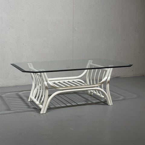 Erinomaisessa kunnossa oleva rottinkinen sivu/sohva/yöpöytä lasitasolla.