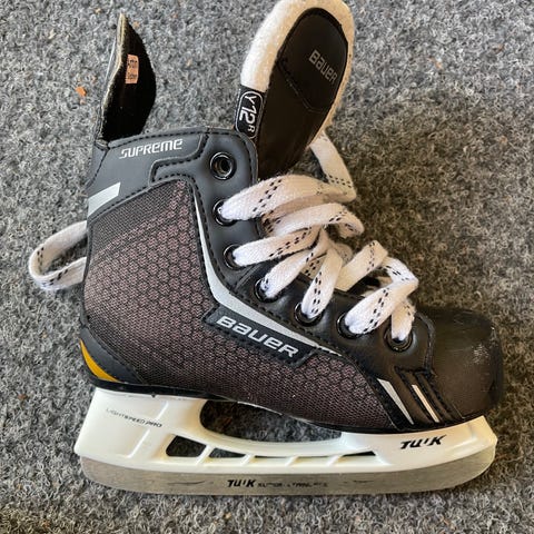 Bauer jääkiekkoluistimet lapsille. Koko 31 (Y13-merkintä sisäpohjassa). Väri musta-vihreä, valkoinen teräkisko. Soveltuvat jääkiekkoharjoitteluun ja luisteluun lapsille, joilla kengännumero on noin 31. Nouto Tikkurila, toridiili, posti
