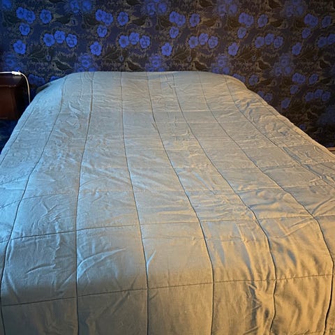 Kaksi kappaletta sinisiä päiväpeittoja, 210 x 120 cm.