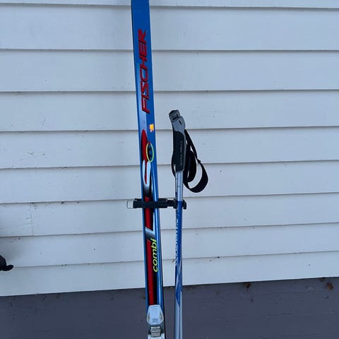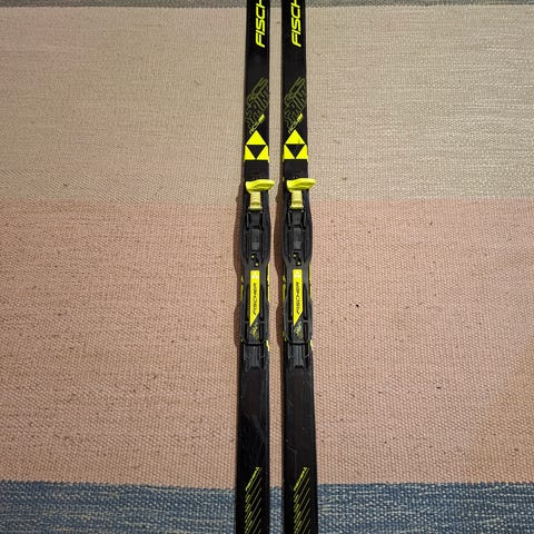 Perinteisen tyylin karvapohjasukset, joissa NNN-tyyppiset Fischer-siteet. Sukset 185cm ja sauvat 130cm
