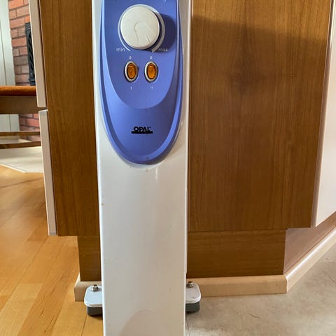 Öljytäytteinen lämmityspatteri termostaatilla.