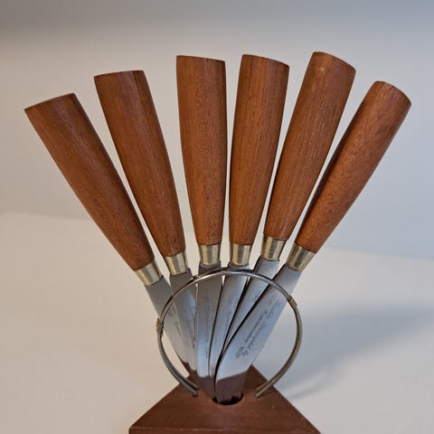 Iisakki Järvenpää Oy valmistmat hedelmäveitset 6 kpl telineessä