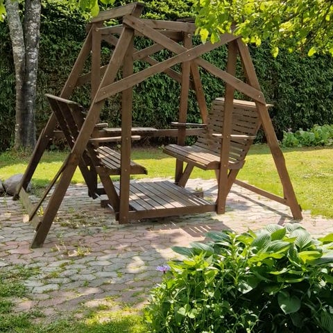 - kahden hengen keinuteline 3,9x1,8x2,3 m + 1 istuin (300 €)