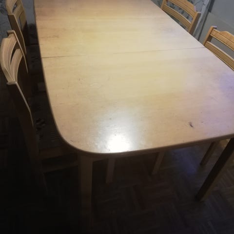 Ruokapöytä jatkopalalla ja 8 tuolia