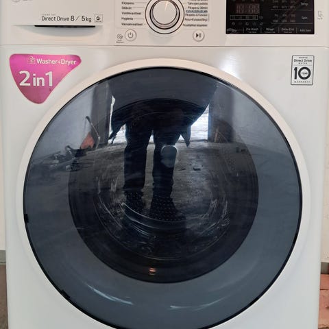 LG DirectDrive Big edestä täytettävä 8kg pesukone valkoinen. Pesukoneessa on etuluukku ja elektroninen ohjauspaneeli ohjelmavalitsimella. Mallissa on LG:n DirectDrive-moottori ja höyrytoiminto (Steam), jotka on merkitty etupaneeliin. Kone soveltuu tavanomaiseen kotitalouskäyttöön erilaisten tekstiilien pesuun. Etupaneelissa on useita ohjelmavaihtoehtoja ja näyttö, josta näkee valitun ohjelman ja jäljellä olevan ajan. Pesukone on vapaasti sijoitettava ja sen päällä on tasainen kansi, jota voi käyttää esimerkiksi pyykkitarvikkeiden säilytykseen. Yhden hengen taloudessa jäänyt vähälle käytölle.