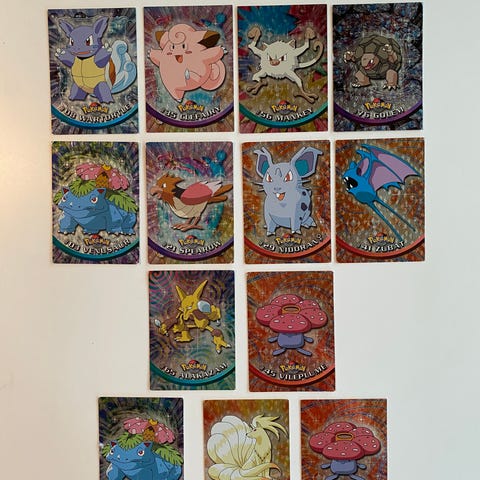 Myyntiin kaikki alkuperäisen TOPPS trading card series 1 hahmo-/tv-kortit. Kortteja on 13 kappaletta, joista neljässä ensimmäisessä on takana Pokedex ja loput yhdeksän muodostavat palapelin.
