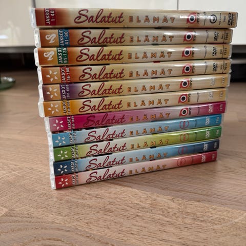 Salatut elämät dvd-boksit. Useita kausia sisältävä kokoelma televisiosarjan jaksoja. Dvd-levyt koteloissa, sopivat dvd-soittimelle. Hyvä kokonaisuus sarjan seuraamiseen tai kokoelman täydentämiseen.