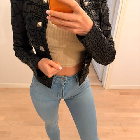 Kaikki takissa olevat niitit on asetettu käsin joka tekee takin valmistamisesta erittäin kalliin ja pitkän tuottaa. Takki on erinomaisessa kunnossa. Vastaavat netissä noin 2000€.