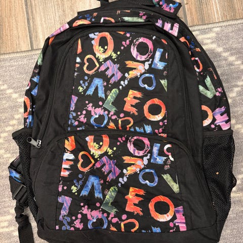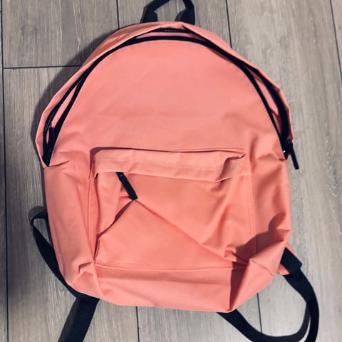 Lähes käyttämätön reppu. Pohjassa pientä likaa, mutta muuten täysin siisti. Vaaleanpunainen/ kukkakuviota.