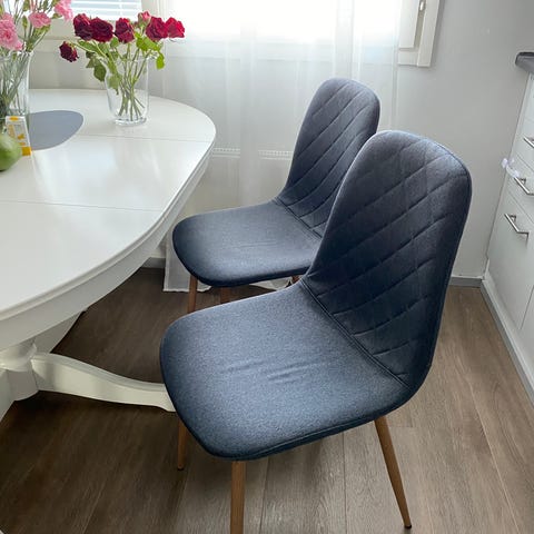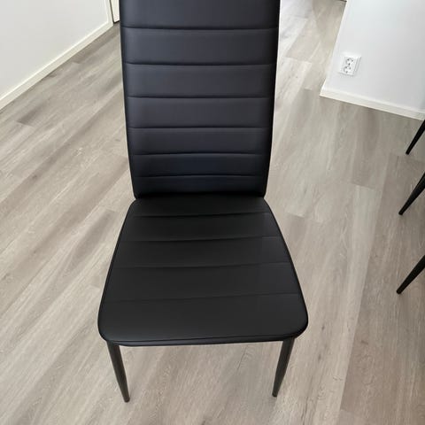 Ruokapöydän tuolit, joissa muovinen istuin ja selkänoja sekä metallijalat. Tuoleissa on irrotettavat pyöreät istuintyynyt. Väri on musta. Sopivat esimerkiksi ruokapöydän ääreen tai yleiseen oleskelutilaan.
