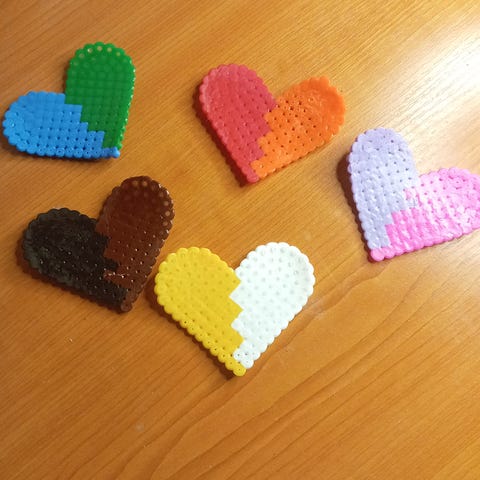 Myydään itse tehtyä hamahelmi sydän ripusteta. Sen voi laittaa reppuun kiinni tai jopa joulukuusen!