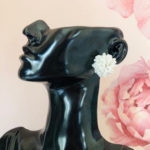 Naisten helmikorvakorut, joissa koukkukiinnitys. Korvakoruissa on valkoiset, kuutiomaiset helmiä muistuttavat helmet metallisessa ripustuksessa. Sopivat arki- ja juhlakäyttöön. Pituus 3,5 cm.