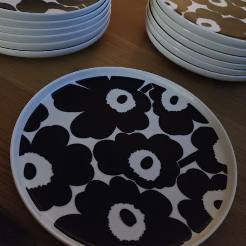 8kpl Marimekko Unikko lautanen mustavalkoinen