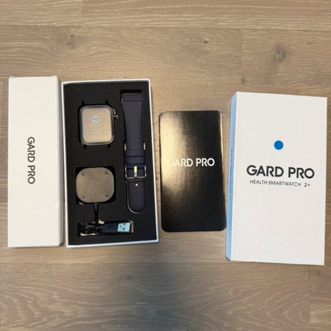 Gard Pro Health Smartwatch 3 älykello. Paketissa on älykello, ranneke, latauskaapeli ja käyttöohjeet. Kellossa on suorakaiteen muotoinen näyttö ja musta ranneke. Sopii yleiseen aktiivisuuden ja hyvinvoinnin seurantaan sekä ajannäyttöön. Ovh. 190€