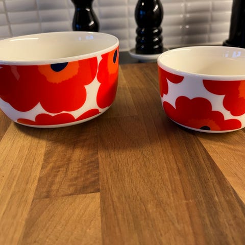 8 kpl Marimekko Oiva Unikko kulho mustavalkoinen