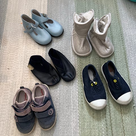 Valkoiset ja turkoosit nahkaiset tossut. Kunto erinomainen. Koko 19/21, mutta voi käyttää jo 16/18.