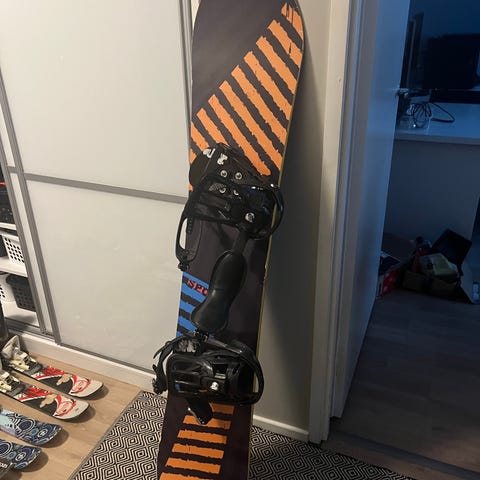 Hyväkuntoinen Hammer lumilauta Firefly siteillä.