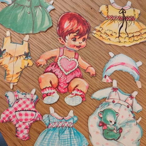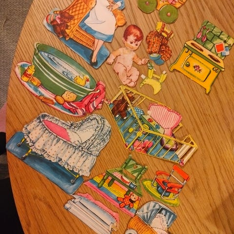 Paperinukke vauva teippaus takana ja vaunut 18 cm kirjemaksu 2.75