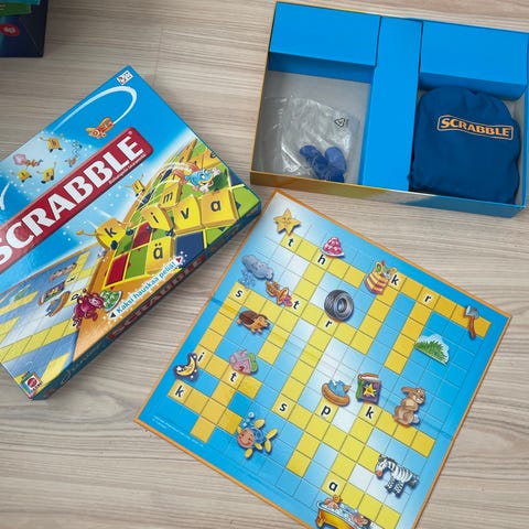 Mattel Junior Scrabble lautapeli lapsille. Sanapeli, jossa kaksipuolinen pelilauta tarjoaa kaksi eri tasoa: helpomman tason pienemmille lapsille ja vaativamman tason hieman vanhemmille. Peli sisältää pelilaudan, kirjainlaatat ja ohjeet. Tarkoitettu sanaston ja oikeinkirjoituksen harjoitteluun leikin kautta useammalle pelaajalle samanaikaisesti.