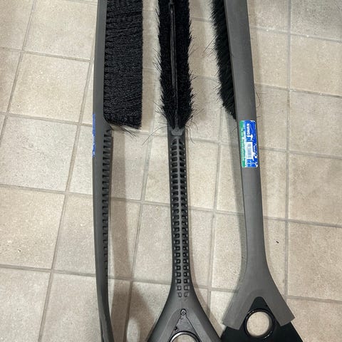 Lumiharja ja jääskrapa, sininen muovirunkoinen malli. Toisessa päässä on harja lumen poistamiseen ja toisessa päässä leveä jääskrapa ikkunoiden ja muiden lasipintojen puhdistamiseen. Soveltuu käytettäväksi esimerkiksi auton ikkunoiden ja korin puhdistukseen talviolosuhteissa.