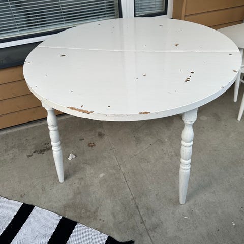 Pinta maalattu valkoiseksi,jalat lakattu kiiltävällä lakalla.